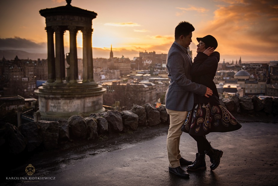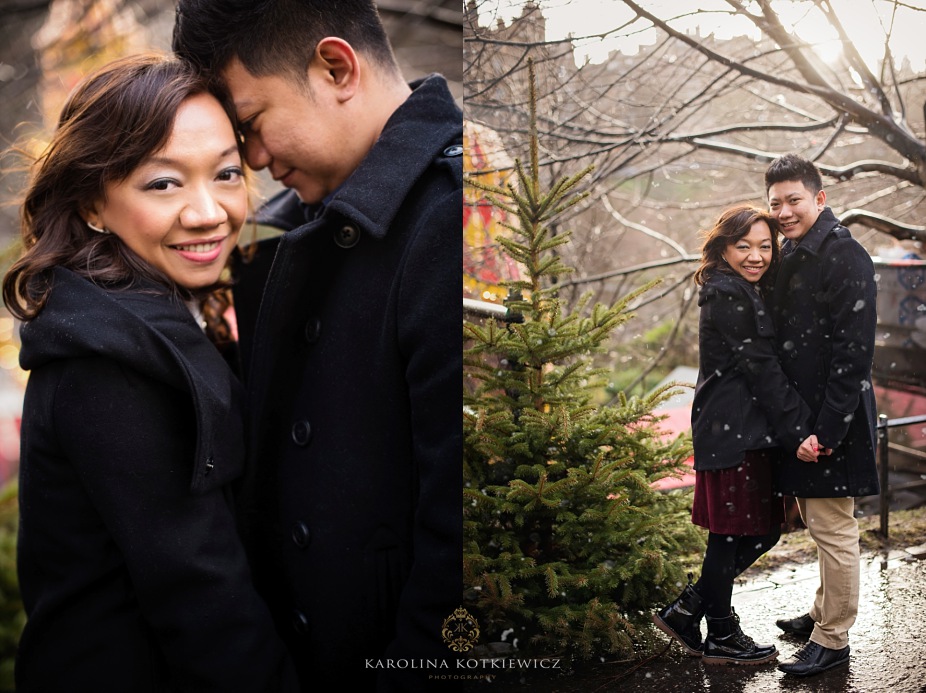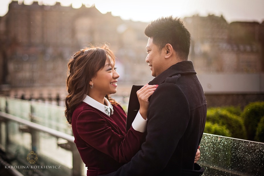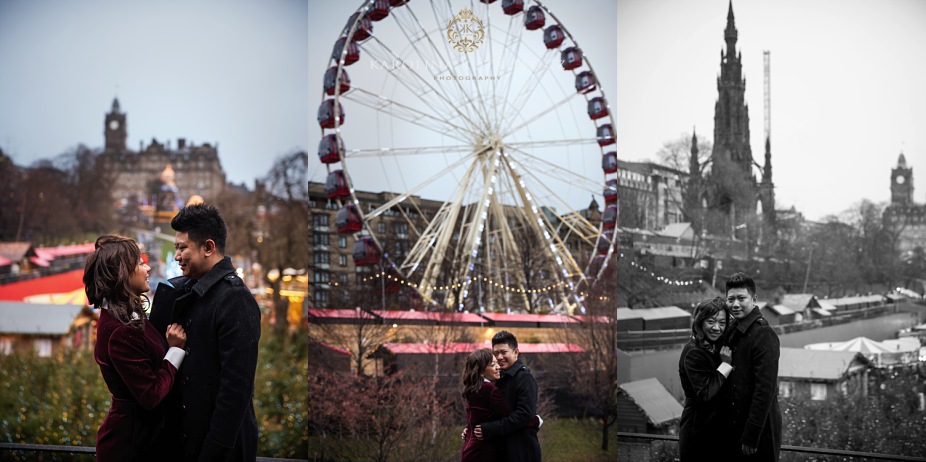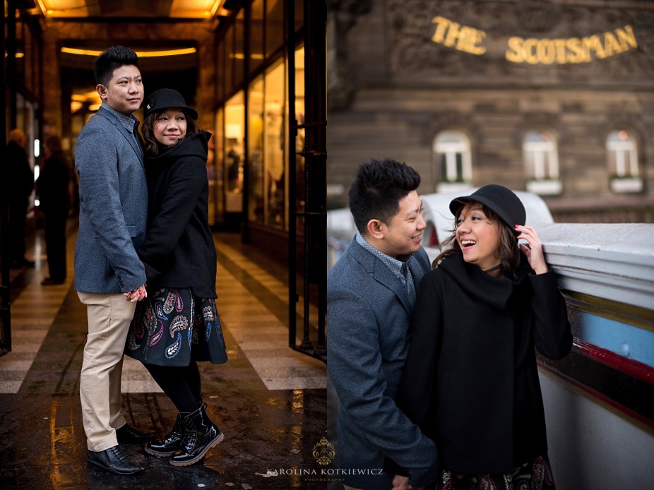 We are always happy when couples from far and around book us to document event, such a like the visit in Edinburgh. Usually when you go somewhere with beloved one you ask people on the street to take your photo now and then, which sometimes its not what you like. They either out of focus or not cropped the way you wanted. So Yani and her hubby had that great idea to book a photographer while they visit Edinburgh. They both travelled from Indonesia and they don’t have Christmas markets and all that festive mood over there. They were very excited to see what Edinburgh has to offer during that time. It was a boxing day when me and Ricky head to the city centre to meet Yani and her hubby. I have to tell you the weather was worst of the worst! But I was so determinate to go ahead with the shoot cuz this was the only day we could do it. I was only worry how the couple will cope with the wind, freeze and snow knowing that they are absolutely not use to this weather.